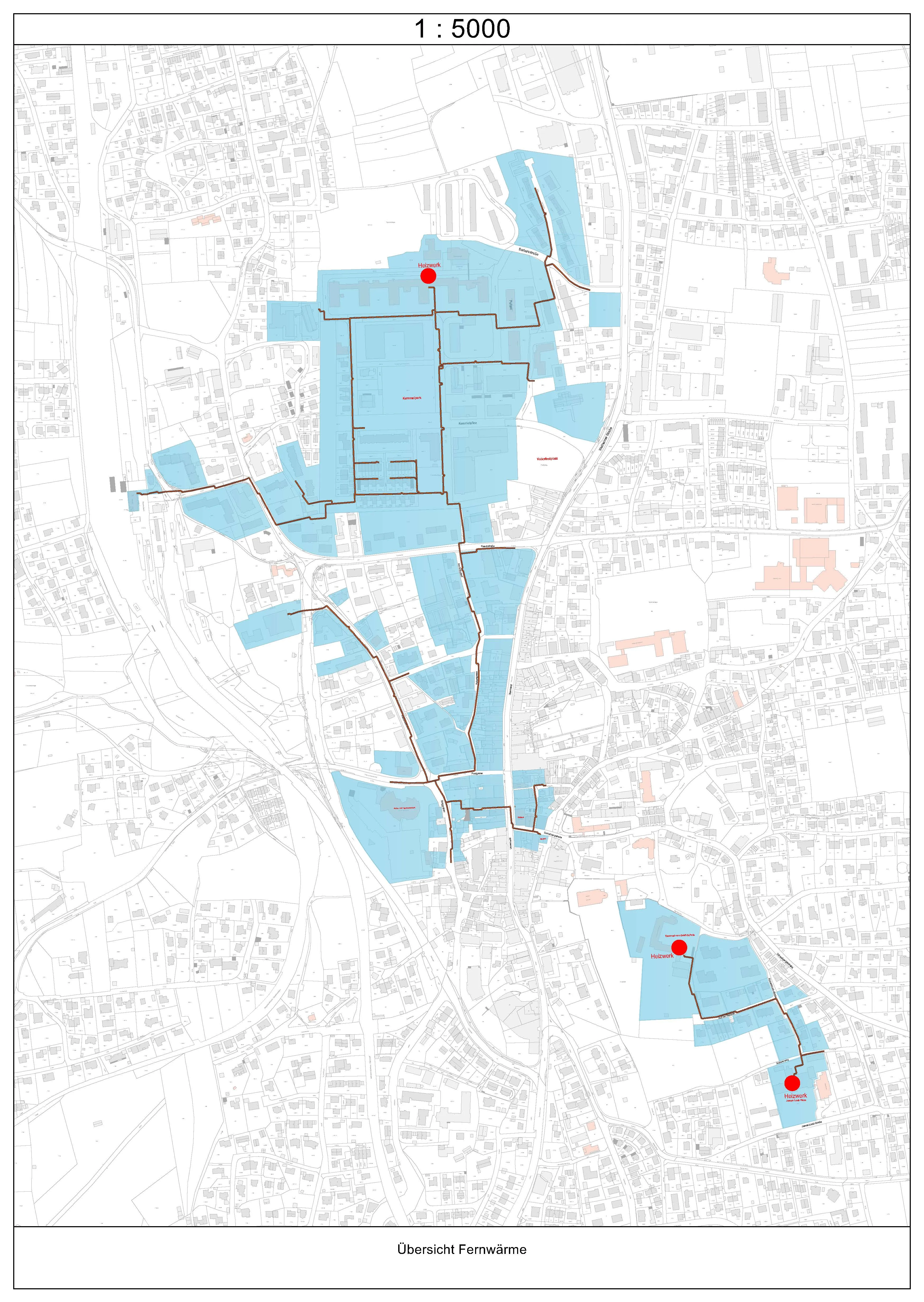 Im Jahr 2016 wurde das Fernwärmenetz im Ortszentrum ausgebaut. Begonnen wurde am Kultur- und Tagungszentrum (KTM) an der Kohlgruber Straße, über den Gabriele-Münter-Platz durch die Höllgasse, den Untermarkt bis zur Schloßbergstraße und Färbergasse. Es wurde das neu renovierte Rathaus, das Bauamt und zahlreiche private Gebäude angeschlossen.